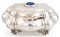Scatola portagioie in argento di forma ovale sagomata con coperchio incernierato centrato da gemma cabochon azzurra, 6x12x9 - gr. 220