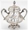 Zuccheriera biansata in argento con lavorazione a torchon; coperchio a cupolino sormontato da un baccello, piede circolare, altezza cm 14 - gr. 214