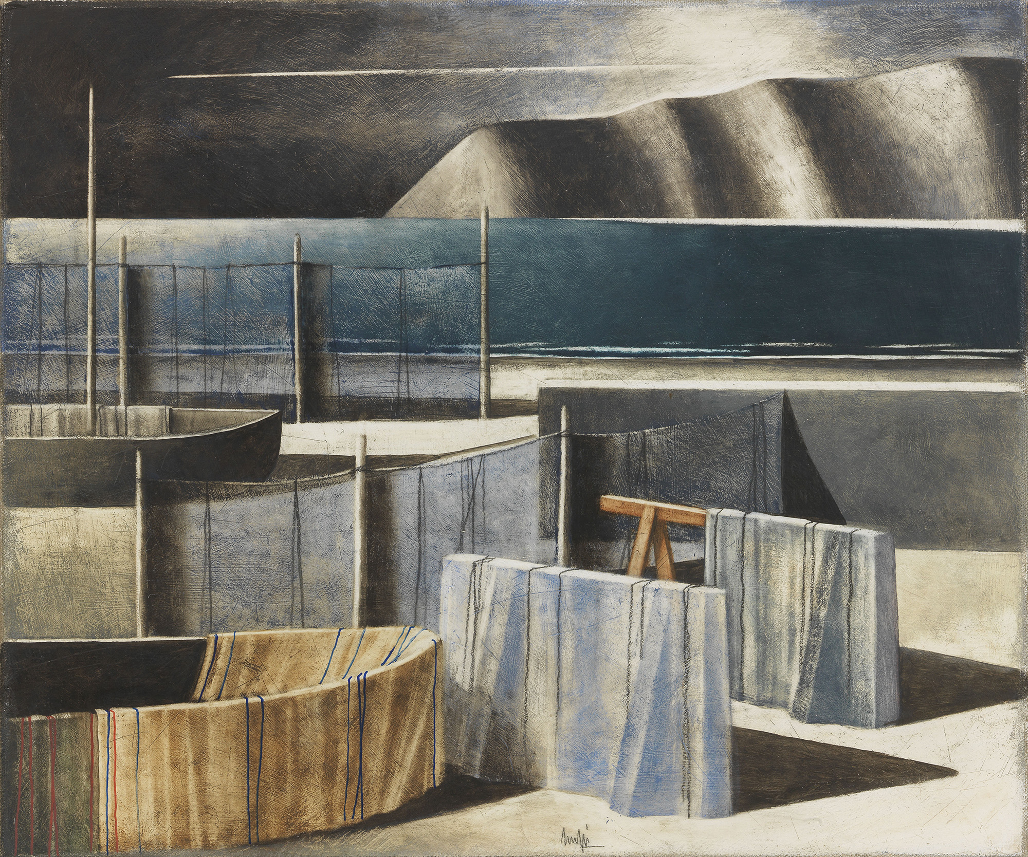 Marcello Scuffi, Tizzana (Pt) 1948 - Quarrata (Pt) 2021, Il mare d'inverno, Olio su tela, cm. 50x60, Firma in basso al centro: Scuffi; titolo e firma al verso sulla tela: Il mare d'inverno / Scuffi.