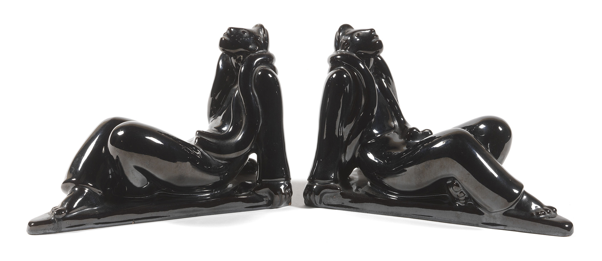 Dante Baldelli, Città di Castello (Pg) 1904 - 1953, Vagabondi, Due sculture in ceramica invetriata, cm. 17x26x13 ca. ognuna