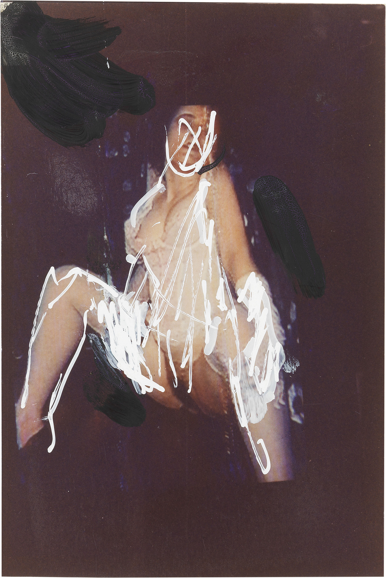 Mario Schifano, Homs 1934 - Roma 1998, Senza titolo, 1990-97, Tecnica mista su fotografia, cm. 15x10, Al verso: timbro Archivio privato Monica Schifano, con n. 496/90-97., Certificato con foto Archivio Mario Schifano, Roma, 30 maggio '07, con n. FR496/90-97.