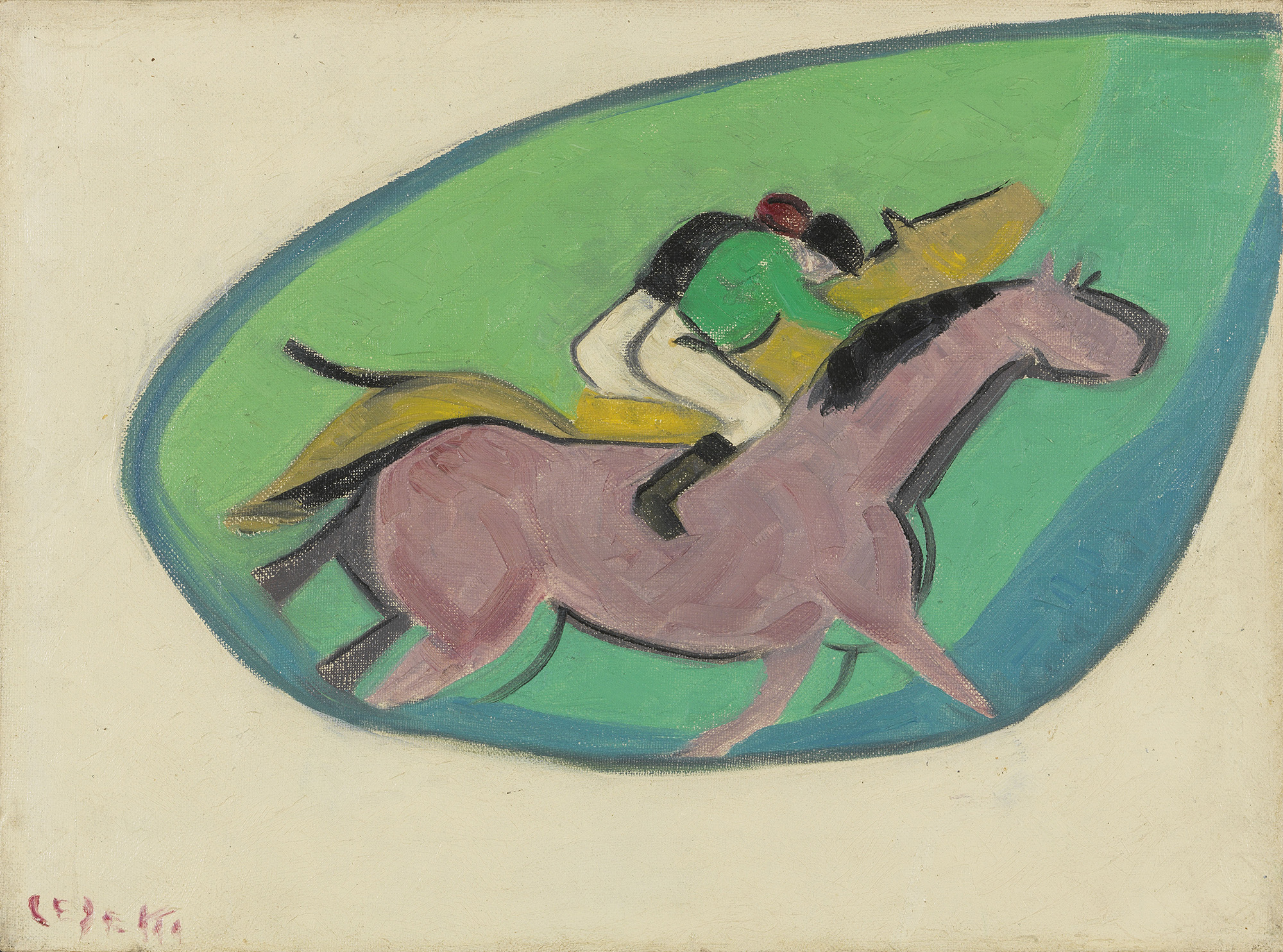Giuseppe Cesetti, Tuscania (Vt) 1902 - 1991, Fantini, 1958, Olio su tela, cm. 30x40, Firma in basso a sinistra: Cesetti; al verso sulla tela: timbro Galleria "La Barcaccia" / Roma / Montecatini Terme: etichetta con firma e timbro Collezione Nazario Salti.