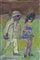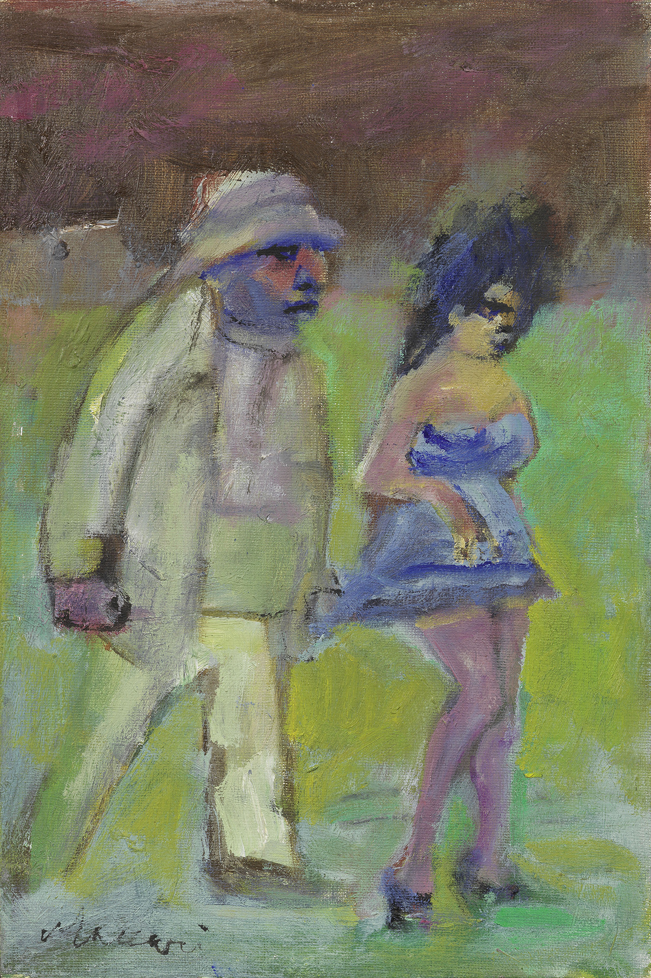 Mino Maccari, Siena 1898 - Roma 1989, Figure, Olio su cartone telato, cm. 30,3x20, Firma in basso a sinistra: Maccari., Foto autenticata dall'artista.