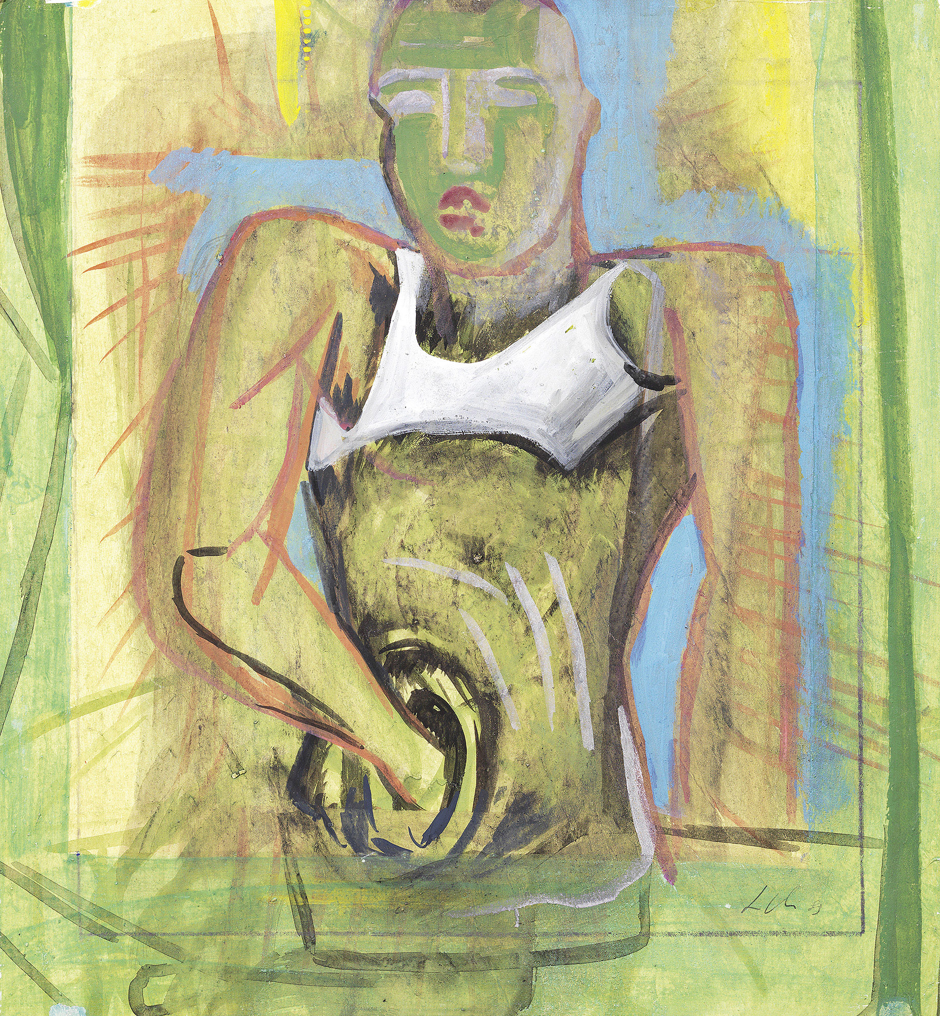 Sandro Chia, Firenze 1946, Senza titolo, 1989, Tecnica mista su cartone, cm. 56,2x51,2, Firma e data in basso a destra: S. Chia 89. Al verso: altra composizione a soggetto figura., Foto autenticata dall'artista.