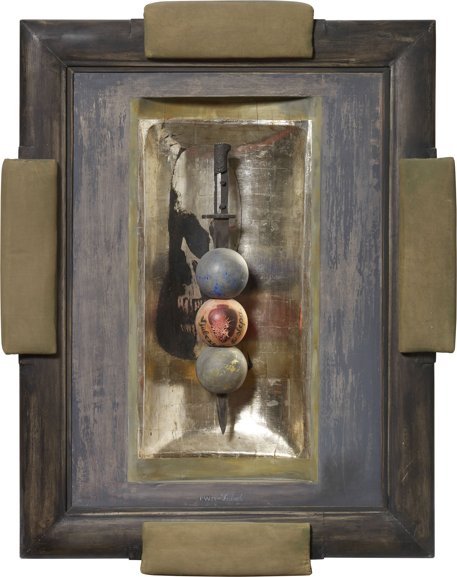 Irwin, Collettivo di artisti sloveni, XX secolo, Senza titolo, Tecnica mista e collage su tavola, cm. 99x78,5x9 (con cornice), Timbro a fuoco sul fronte: Irwin Laibach.