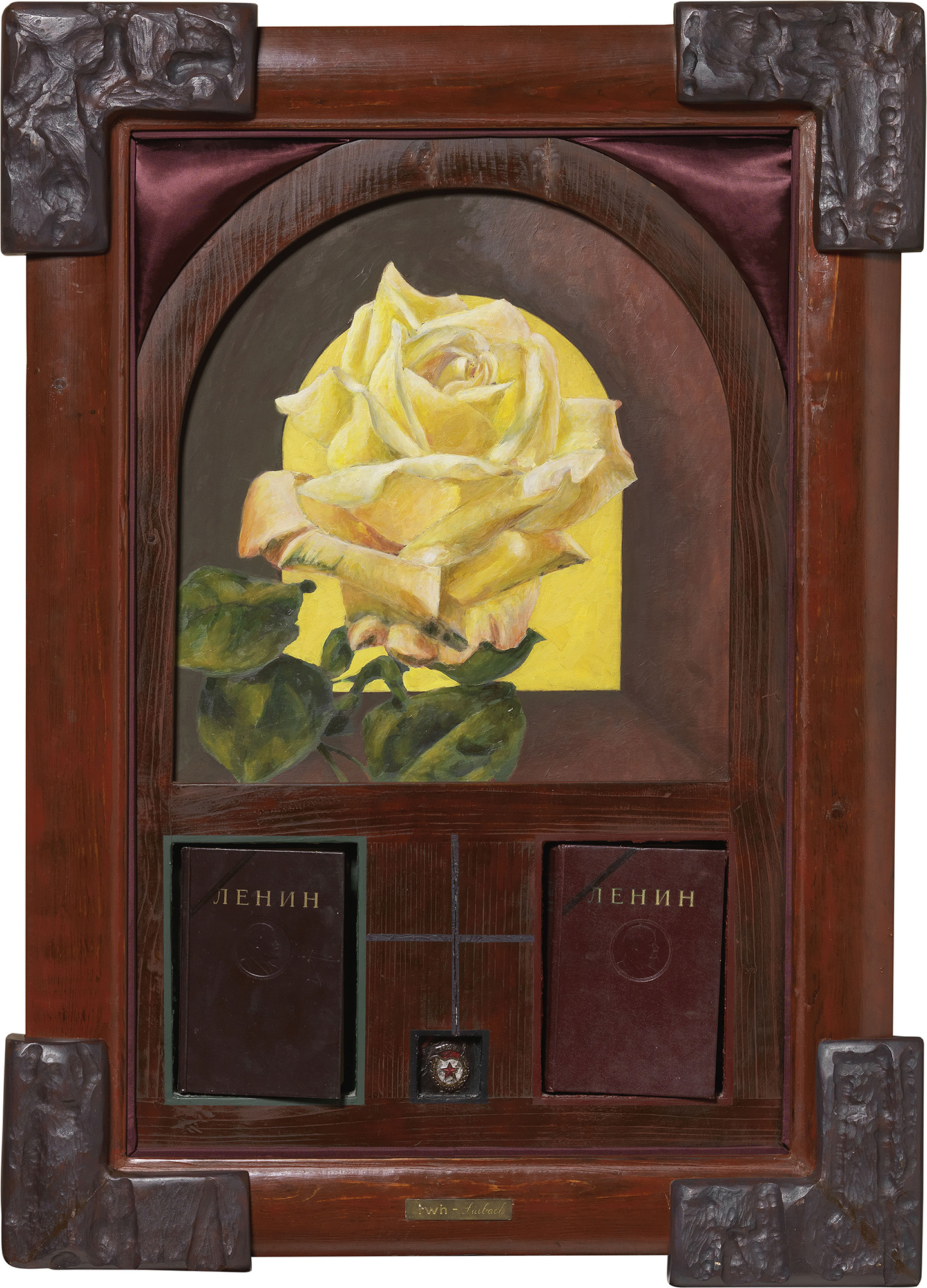 Irwin, Collettivo di artisti sloveni, XX secolo, Slovar Tisine, 1990, Tecnica mista su tavola, cm. 103x73x6 (con cornice), Targhetta sul fronte: Irwin Laibach; scritta al verso: Irwin / Was ist Kunst / 1990 / Slovar Tisine: timbro Neue Slovenische Kunst: timbro Irwin., Esposizioni: Irwin - Kapital, Lubiana, Institut - NSK, 1991, cat. n. XII, illustrata a colori (con titolo Dictionary of Silence);, Irwin - Kapital, Pittsburgh, Center for the Arts, 1991, illustrata a colori sul pieghevole della mostra.