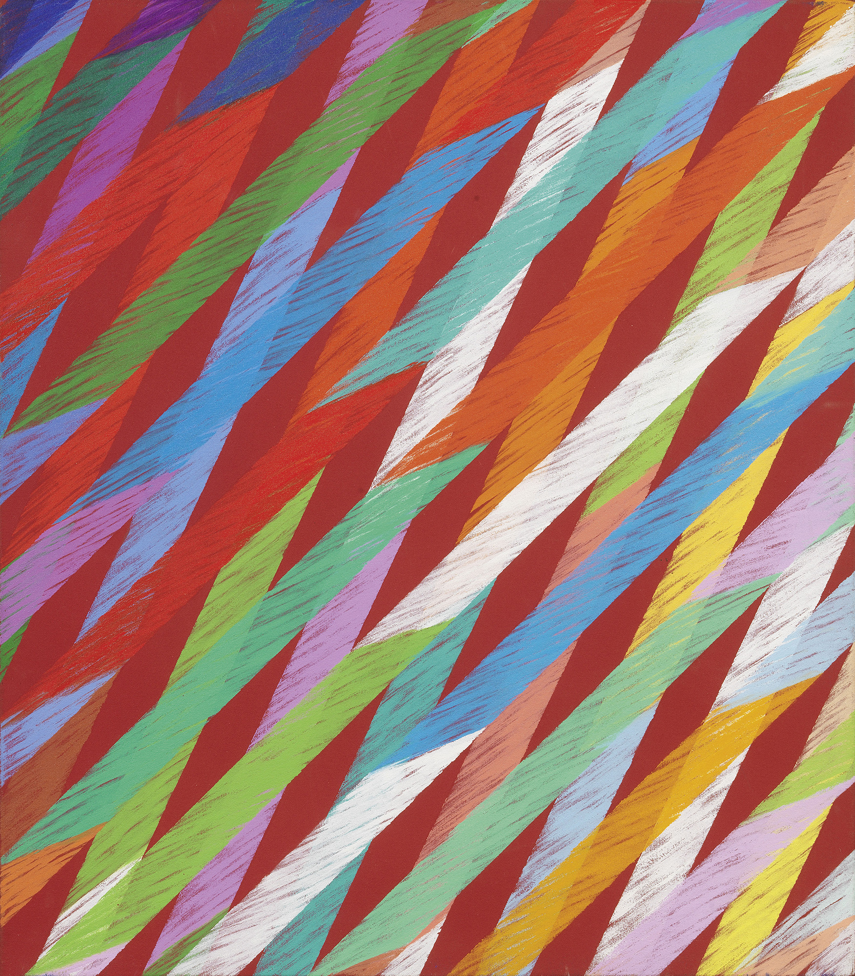 Piero Dorazio, Roma 1927 - Perugia 2005, Alzabandiera, 1999, Olio su tela, cm. 74,5x64,5, Firma, data e titolo al verso sulla tela: Piero Dorazio / 1999 / "Alzabandiera"; sul risvolto della tela e sul telaio: due timbri Studio Piero Dorazio, con n. 4577., Foto autenticata dall'artista con timbro Studio Piero Dorazio e n. 4577; opera registrata presso l'Archivio Piero Dorazio, Milano, come da certificato su fotografia.