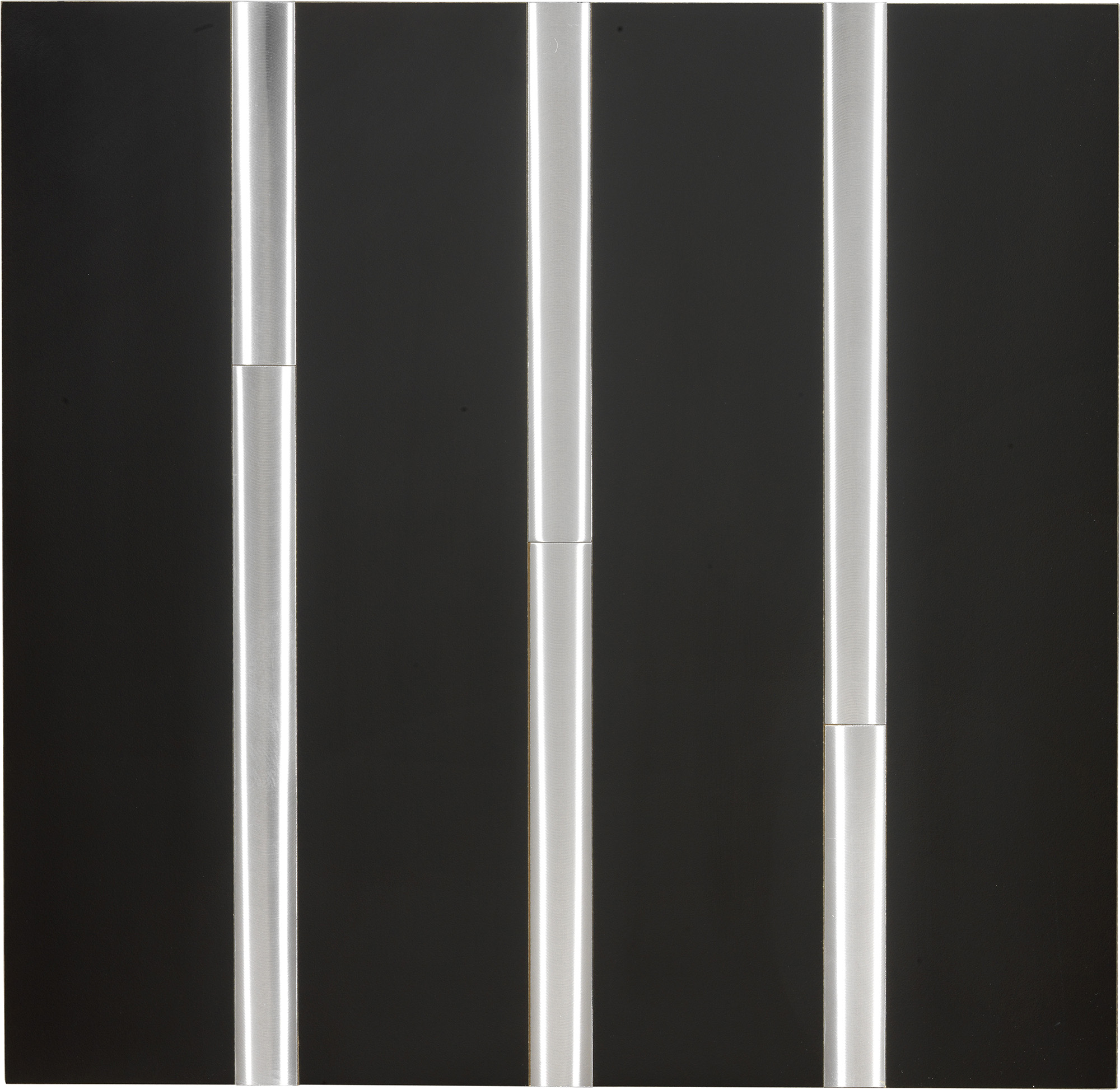 Getulio Alviani, Udine 1939 - Milano 2018, Superficie III, 1996, Alluminio e laminato nero, cm. 52,5x52,5, Firma, titolo e data al verso: Getulio Alviani /, Superficie III 1.1/2.2 / 2.1/2.1 / 1996: timbro Getulio Alviani., Foto autenticata dall'artista.