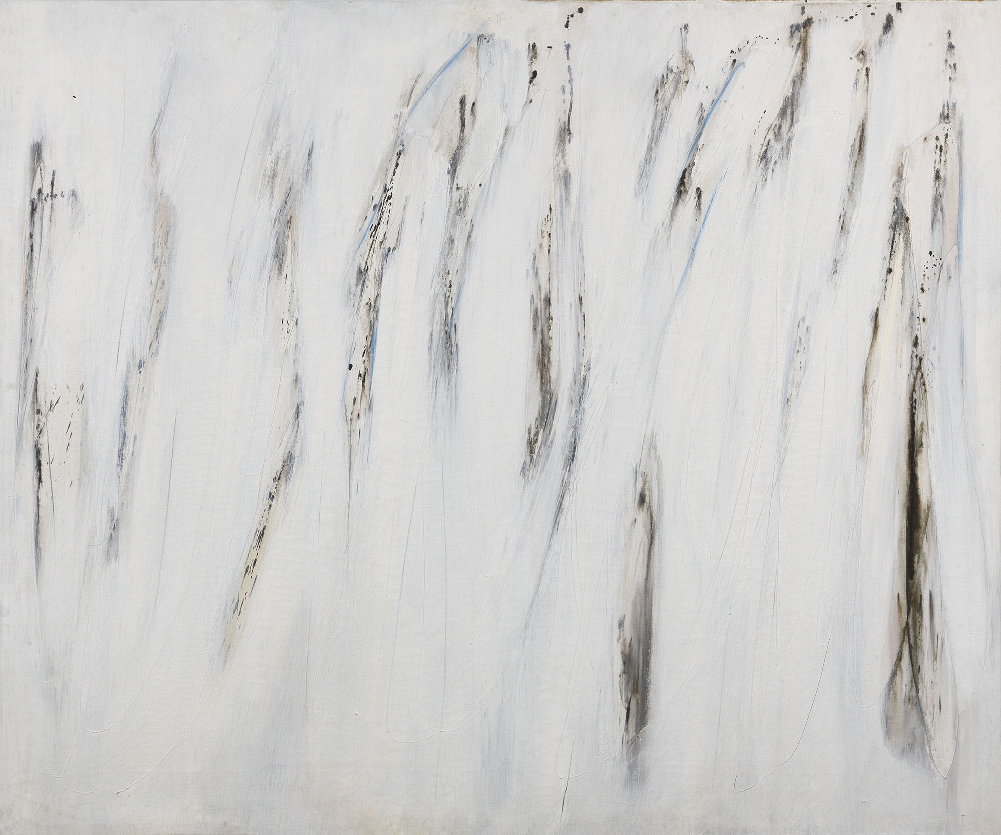 Enrico Castellani, Castelmassa (Ro) 1930 - Roma 2017, Senza titolo, 1959, Olio e fili su tela, cm. 100x120, Firma e data al verso sulla tela: Castellani 2/59., Certificato su foto Archivio Castellani, Milano, con n. 59-036.