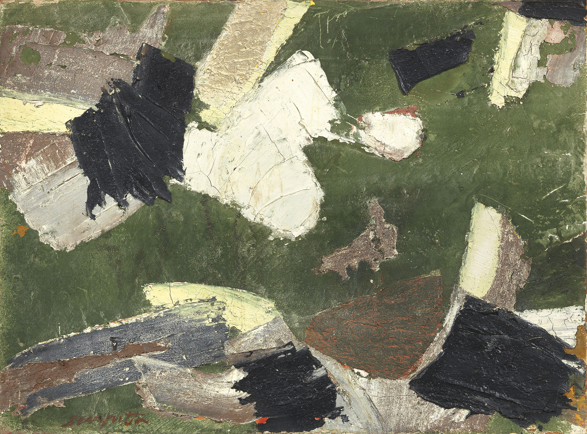 Salvatore Scarpitta, New York 1919 - 2007, Senza titolo, 1957, Olio e tecnica mista su tela, cm. 45,8x60,5, Firma in basso a sinistra: Scarpitta; firma e data al verso sulla tela: Scarpitta 1957., Storia: Sotheby's, New York, 12 settembre 2007, lotto n. 84; Collezione privata, Milano; Collezione privata