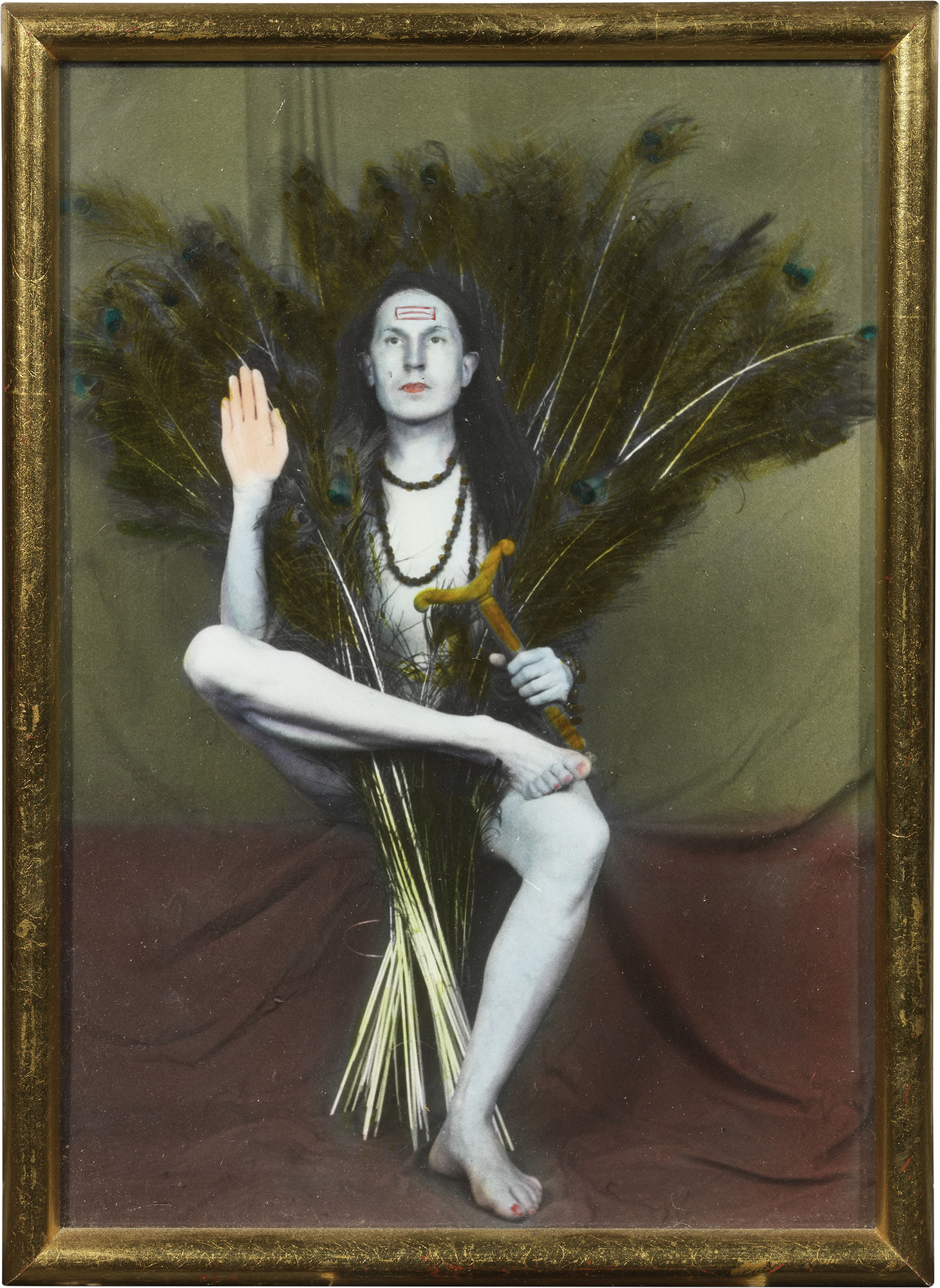 Luigi Ontani, Vergato (Bo) 1943, Baba Balak Nath, Fotografia acquerellata, cm. 18x13 (con cornice), Titolo e firma al verso: «Baba Balak Nath» / Ontani: timbro dell'artista; sulla cornice: dedica e luogo entro cartiglio dell'artista [...] Semper / Ontani / Romancora.