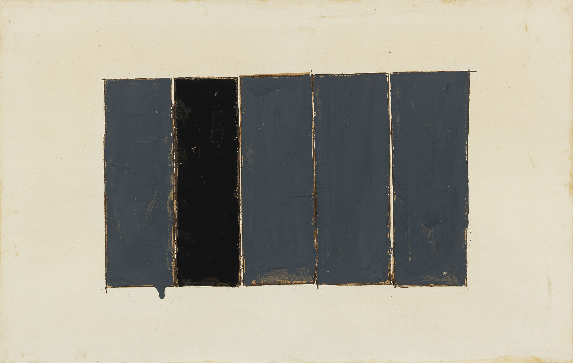 Mario Schifano, Homs 1934 - Roma 1998, Senza titolo, 1962, Tecnica mista su carta applicata su tela, cm. 56x87 (carta), cm. 58,4x90 (tela), Opera archiviata presso la Fondazione Mario Schifano, Roma, al n. 62/124 (con misure cm. 70x100).