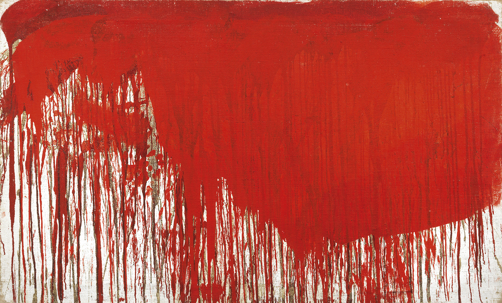 Hermann Nitsch, Vienna 1938, Senza titolo, 1987, Tecnica mista su tela, cm. 120,5x200, Firma e data al verso sulla tela: Hermann Nitsch 1987; firma, data e luogo sul telaio: Hermann Nitsch 1987 Napoli.