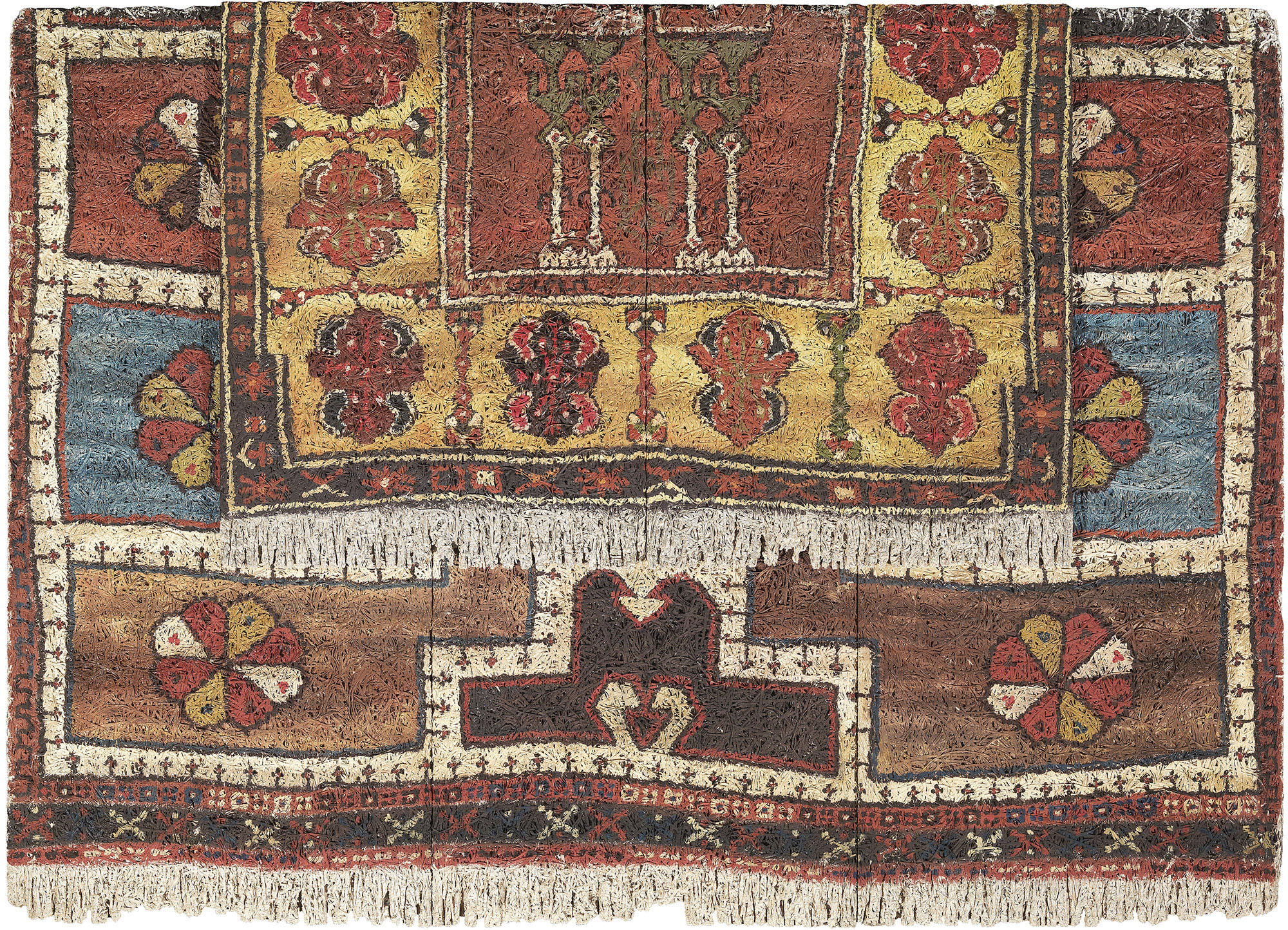 Aldo Mondino, Torino 1939 - 2005, Tappeti stesi, 1995, Olio su tamburato, cm. 131x180, Firma e data al verso: Mondino 95., Foto autenticata dall'artista; certificato con foto Archivio Aldo Mondino, Milano, 5 luglio 2007, con n. 20070315233948., Bibliografia: Antonio Mondino, Aldo Mondino. Catalogo generale, vol. 1, Allemandi, Torino, 2017, p. 684 n. 1.