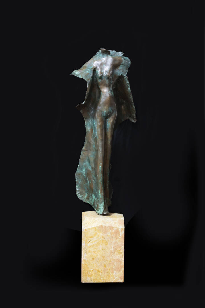 H. cm 104, scultura in bronzo patinato con base in marmo