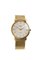 Cassa in oro giallo ultra sottile. Quadrante argento con indici geometrici applicati. Bracciale in oro non firmato ed integrato.