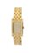 Cassa dorata di forma rettangolare. Quadrante con numeri arabi ed indici applicati. Bracciale