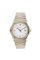 Cassa in acciaio decorata con lunetta dorata e viti. Quadrante bianco con indici geometrici applicati a numeri romani ai quarti serigrafati. Indicazione della data ad ore 3 e dei secondi continui al centro. Bracciale in acciaio integrato con chiusura a scomparsa.