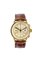 Cassa in oro con fondello a pressione, tasti quadri della cronografia e lunetta a scalino.