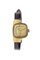 Cassa dorata, asimmetrica, con fondello a pressione. Quadrante champagne con scritta "Dior" serigrafata al 6.