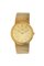 Cassa in oro giallo estremamente sottile con lunetta liscia. Quadrante champagne con indici geometrici applicati. Bracciale in oro giallo integrato