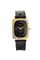 Cassa di forma, placcata oro giallo. Quadrante in smalto nero con decorazione ellittica al centro.
