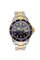 Cassa in acciaio con lunetta e corona a vite in oro giallo; quadrante blu con indici geometrici luminescenti applicati; datario al 3; secondi centrali