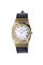Cassa in acciaio, di forma, lavorata a settori con fondello a pressione e lunetta dorata. Quadrante