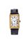 Cassa curva, placcata oro, con fondello a pressione. Quadrante bianco con numeri romani serigrafati e minuteria aperta centrale. Indicazione dei secondi continui ad ore 6.