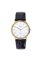 Cassa in oro ultrasottile con fondello a scatto. Quadrante bianco effetto porcellana con indici geometrici applicati.