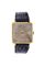 Cassa in oro di forma quadrata con fondello a pressione. Quadrante argento virato nei toni dell'ocra con indici geometrici applicati. Indicazione centrale dei secondi continui e finestrella della data ad ore 3.