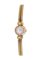 Cassa in oro miniaturizzata; anse decorate dalle quali diparte un doppio cordoncino d'oro che forma il bracciale con chiusura a scomparsa. Corona di carica posta sul retro della cassa. Quadrante argento con numeri arabi ed indici romboidali alternati.