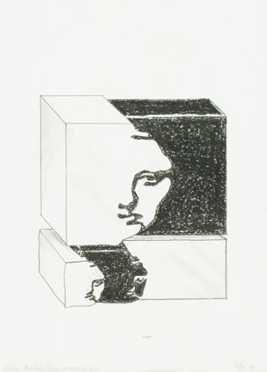 Franco Fossi Clone double - face Monnalisiano, 1988 Tecnica mista su carta, cm. 31x22 Firma e data in basso a destra, titolo in basso a sinistra. Sul verso: firma e data.