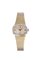 Cassa in oro bianco di forma con fondello a pressione. Quadrante argento soleil con indici geometrici applicati. Bracciale a maglia finissima in oro bianco con chiusura a scomparsa.