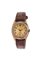 Cassa in oro rosa 9 Kt a forma di “cuscino” con fondello a pressione. Quadrante color ocra con minuteria a binario serigrafata e numeri arabi luminescenti. Indicazione dei secondi continui ad ore 6.