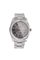 Cassa in acciaio con fondello a vite e lunetta liscia. Quadrante grigio soleil con numeri romani serigrafati ed indici geometrici applicati.