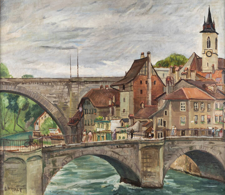 CARLO VITALE<BR>Milano 1902 - 1996 Camogli (GE)<BR>"Scorcio cittadino"