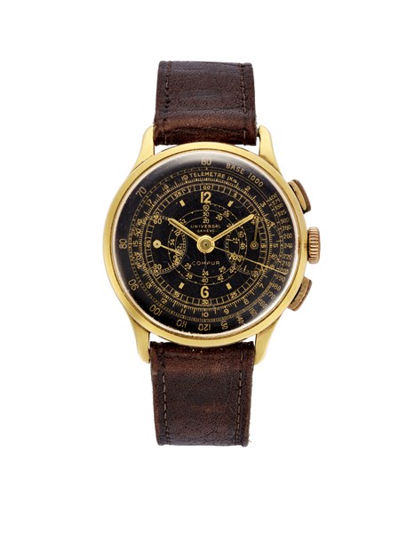 UNIVERSAL COMPUR Orologio da polso da uomo in oro 18K Anni '30/'40 Quadrante, m