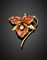 Spilla in oro giallo a guisa di fiore rifinita con coralli e diamanti, spillone