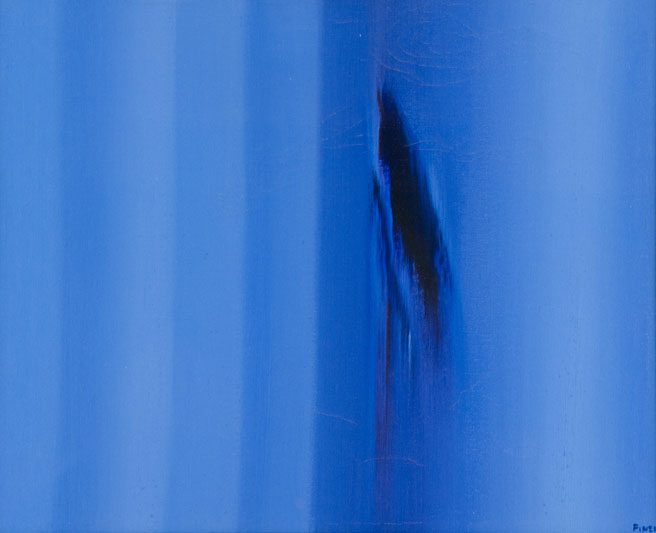 Ennio Finzi Scale cromatiche in azzurro Olio su tela, cm. 45,5x55 Craquelure...