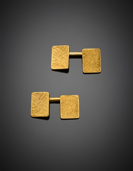 Yellow textured gold rectangular cufflinks, g 8.09 circa. Marked 118 MI.