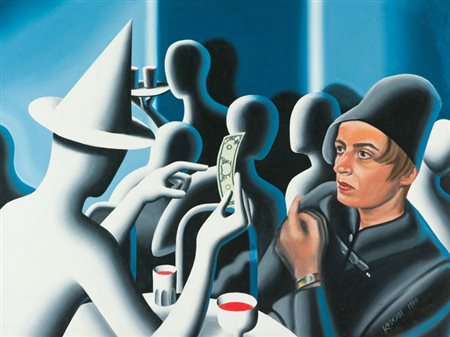 Mark Kostabi Not on the money (for Mykul), 1990 Olio su tela, cm. 76x102...