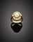 Anello in oro giallo con perla coltivata a bottone di mm 8,25 circa,e diamanti