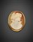 Spilla/pendente in oro giallo e cammeo in conchiglia con profilo femminile, g 6