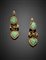 Orecchini pendenti in oro giallo 333/1000 con turchesi ovali e a cuore contornati da microperle, g 9,01 circa, lungh. cm 3,80 circa. Marcati 488 NA. (difetti)