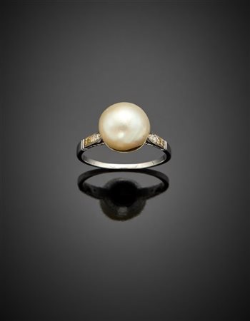 Anello in oro bianco con perla di mm 9,50x10 circa, g 3,56 circa misura 16/56.