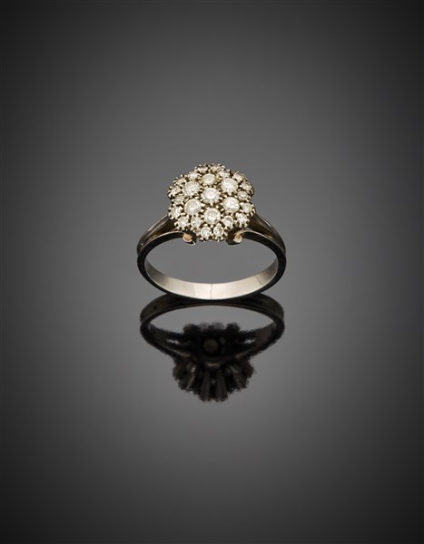 Anello in oro bianco con pavè di diamanti per complessivi ct. 0,35 circa, g 3,2