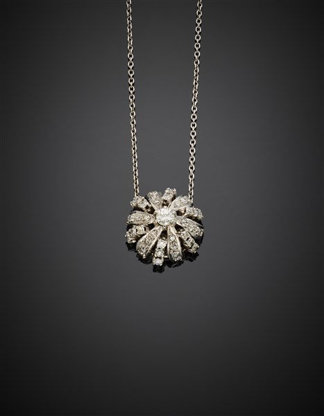 White gold chain with diamond central, g 8.15 circa, length cm 45.50 circa. Chain marked 359 AR.