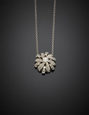 Catenina con centrale in oro bianco e diamanti, g 8,15 circa, lungh. cm 45,50 circa. Catenina marcata 359 AR.