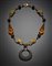 Collier in oro giallo, quarzo ialino, ambra, al centro pendente in onice, detta